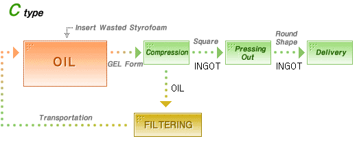 However, this reducing method contains various difficulties, such as difficult separated collection, transportation, cleaning, pulverizing process, complicated mechanical operation and strict E.P.S. condition. This cuases great amount of expense for recycling wasted E.P.S., and has limitation with improving the recycling rate.