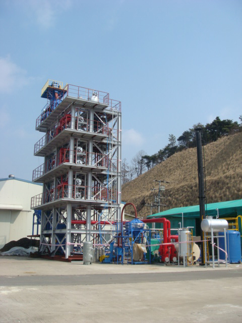 Fuel insertion in item 2, preheating process ¡æ Sublimation process is performed at main decomposition chamber ¡æ Separated gas is compressed and transported to concentration device in item 2, remaining CARBON BLACH and other solid state materials and steel cores are transported to separation process in item 3 |