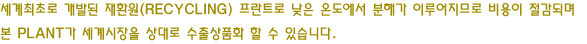 ºÐÇØÃ³¸® ½Å±â¼úÀº 200¡É~250¡É¿¡¼ ¿¬¼ÓÀûÀÎ ¿îÀüÀÌ °¡´ÉÇÏ¸ç ¿ø¹°¼ºÀÇ ¿ÀÀÏ, Ä«º»ºí·¢, ö, ±âŸ ¸Þź